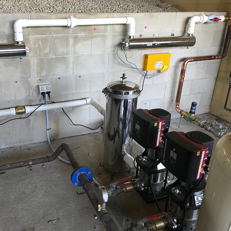 Hospital rainwater variable drive pump set.